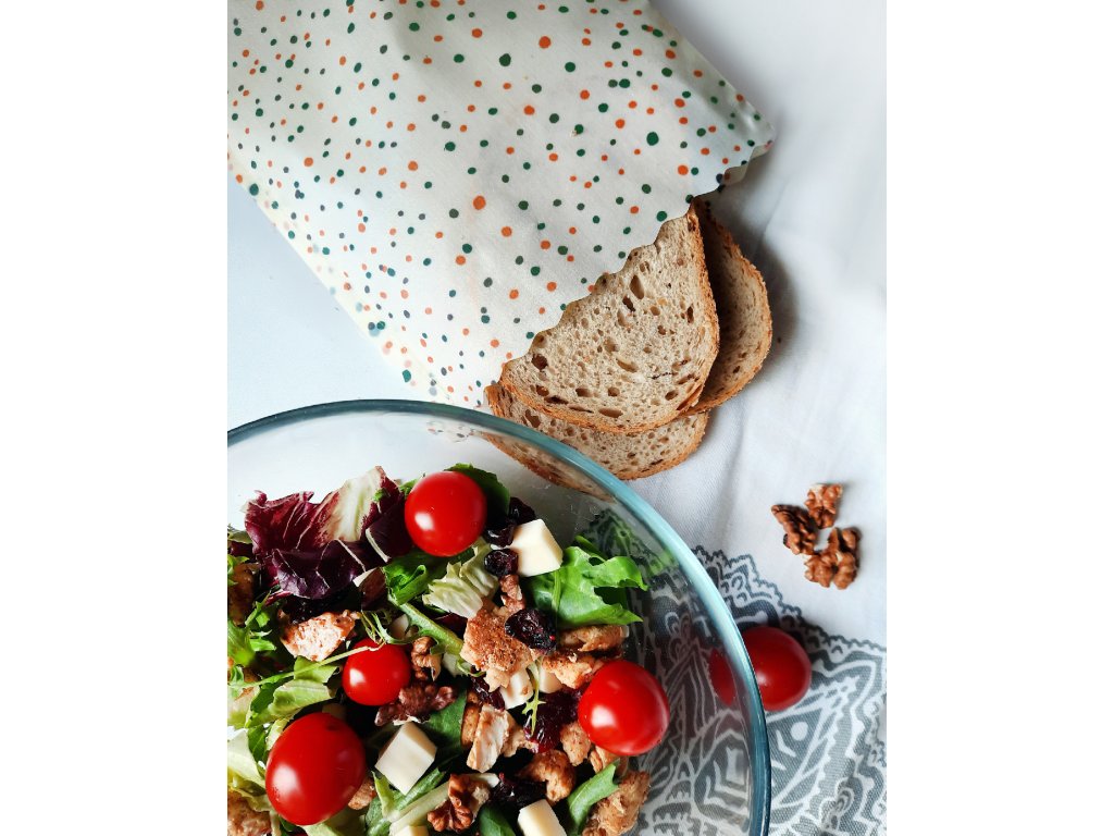 Máme pro vás úplnou novinku v našem sortimentu – ekologické sáčky na chleba, svačinu, výborné ovoce nebo zeleninu. Voskované sáčky jsou ideální pro sypké i vlhké produkty. Tak hurá do práce a vezměte si zdravé müsli do práce nebo svůj oblíbený sendvič s rajčaty nebo omáčkou – nic se nevysype ani nevyteče a vzor DOTS se svým designem hodí do každé kuchyně!