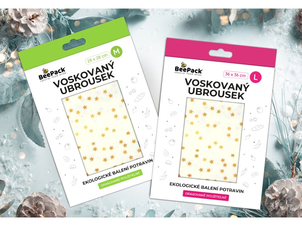 Máme pro vás NOVINKU – voskované ubrousky BeePack s malými, zlatými hvězdičkami – v elegantním balení s okénkem!